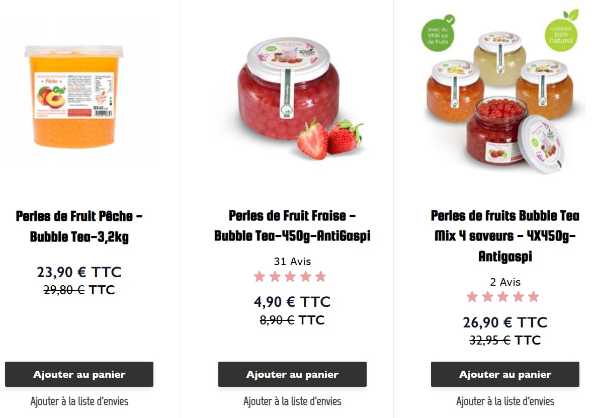 2️⃣Ajoutez les produits que vous souhaitez : je recommande les perles fruitées, mais si vous découvrez le bubble tea, optez pour le kit complet.