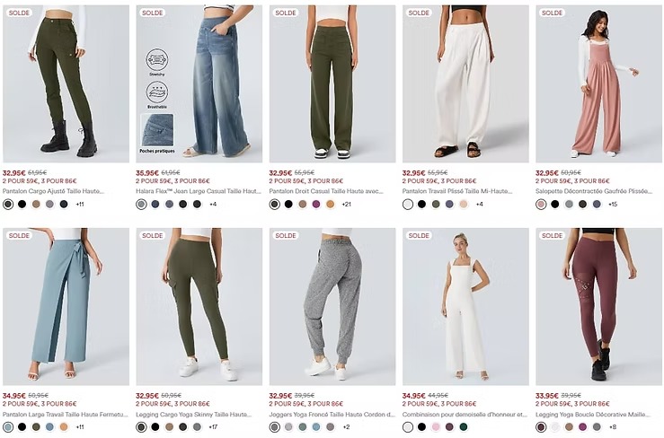 Exemples de réductions lors de soldes chez Halara